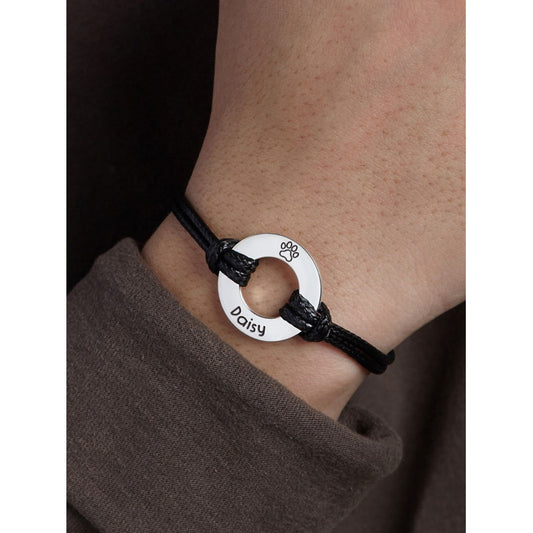Pet Name Leather Bracelet, Memorial Dog Dad Gift, Loss of Pet Gift