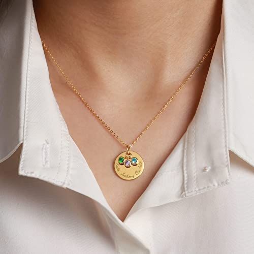 Mom Necklace With Kids Names Birthstones, Children Birthstone Jewelry