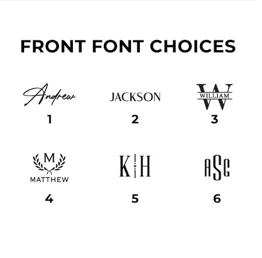 • Front/Outside engraving: 6 font options